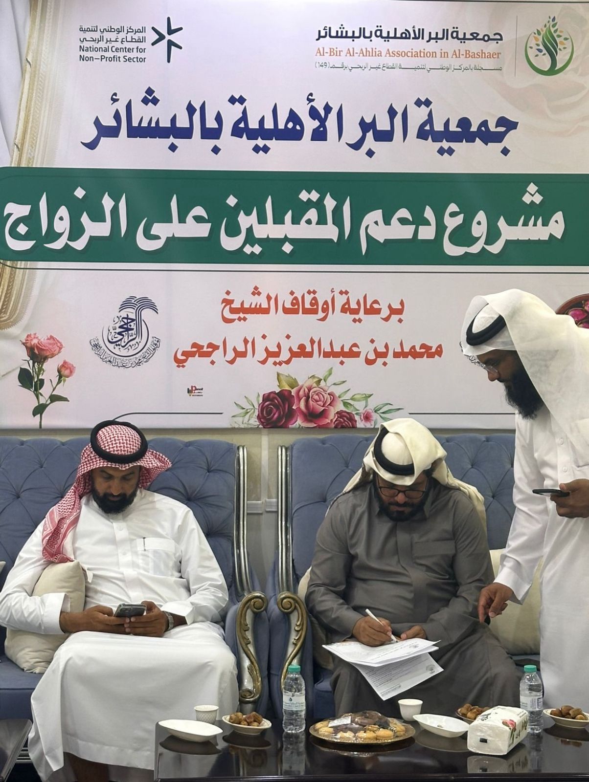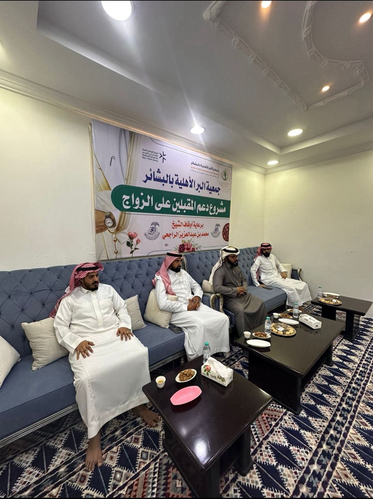 نفذت جمعية البر الأهلية بالبشائر اليوم مشروع “دعم المقبلين على الزواج” ضمن برامجها المجتمعية، مستهدفة 13 شابًا.