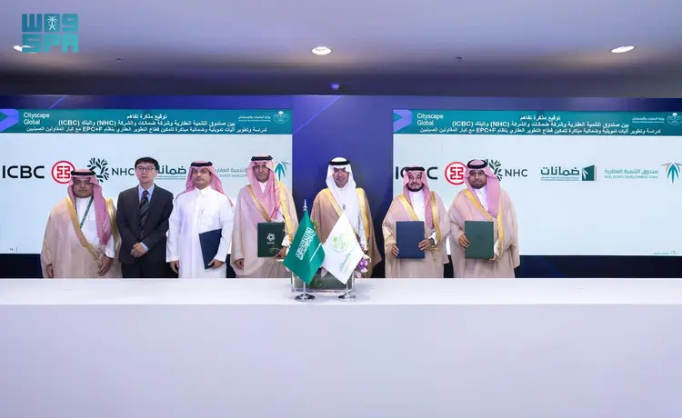 وتهدف المذكرة إلى دراسة وتطوير آليات تمويلية وضمانية مبتكرة لتمكين قطاع التطوير العقاري من التعاقد بنظام EPC+F مع كبار المقاولين الصينيين واستكشاف الفرص المشتركة لتصميم وتطوير برامج ومنتجات تمويلية جديدة تدعم أعمال القطاع وتمكّنه من تنفيذ المشاريع الإسكانية بكفاءة أعلى.